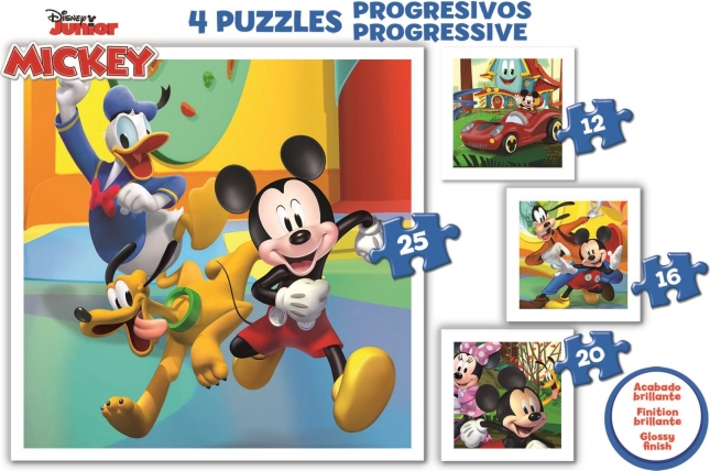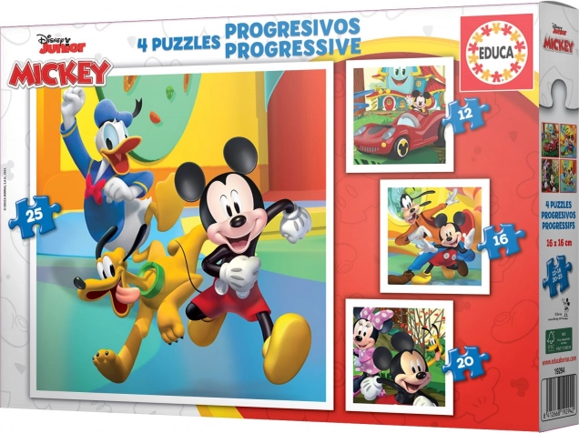 Ce puzzle Educa Mickey et ses amis contient quatre images différentes avec un nombre variable de pièces, ce qui permet d’augmenter progressivement la difficulté. Les enfants peuvent choisir entre 12, 16, 20 et 25 pièces, améliorant ainsi continuellement leurs compétences d’assemblage.