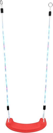 Cette balançoire pour enfants 2Kids Toys de couleur rouge offre un balancement sûr et des effets visuels grâce aux cordes éclairées LED avec plusieurs modes lumineux. Le contrôle est facile via la télécommande fournie, afin d’adapter l’ambiance à chaque jeu.