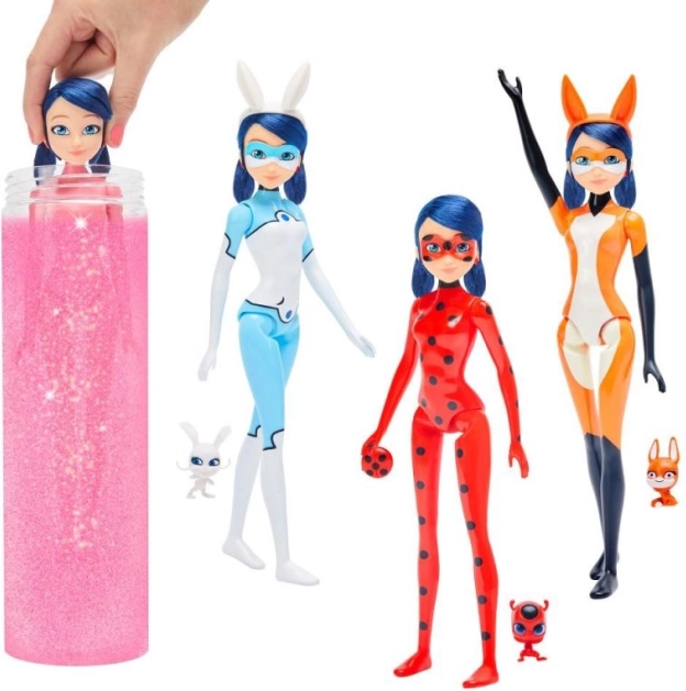 Avec cette incroyable poupée Marinette, votre enfant plongera dans l'univers des super-héros. Magic Heroez Transformation permet de révéler des secrets à l'aide de l'eau. Dans chaque capsule, Marinette vous attend avec trois tenues uniques - renard, lapin ou coccinelle.