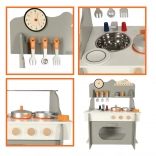 La cuisine en bois pour enfants est idéale pour les petits explorateurs qui aiment imiter les activités des adultes. Grâce à cette cuisine, ils peuvent découvrir en toute sécurité la magie de la cuisine. Elle est équipée des ustensiles nécessaires comme une casserole, des poêles, une planche à découper ainsi que des salières/épices qui rendent le jeu encore plus réaliste.