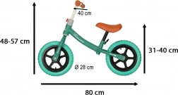 Les roues en mousse sont silencieuses, ne salissent pas et ne rayent pas le sol ; elles conviennent donc aussi aux trajets en intérieur. Grâce à la selle réglable (31–40 cm) et au guidon (48–57 cm), la draisienne grandit avec l’enfant.