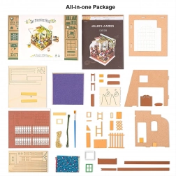 Cette miniature DIY soignée transformera votre temps libre en une expérience créative agréable. Le kit contient des pièces prédécoupées en contreplaqué, des impressions papier, des éléments textiles et métalliques, des peintures et de la colle. Grâce à l’éclairage LED, chaque détail ressort et le modèle fini devient une décoration élégante pour une étagère ou un bureau.