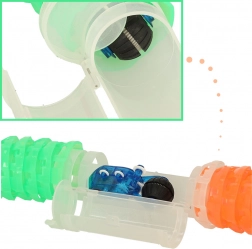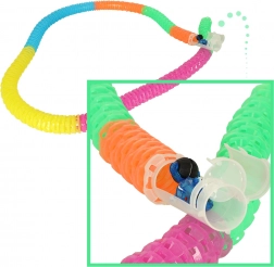 L’assemblage créatif des pièces permet deux modes de construction : souple pour des virages flexibles ou rigide pour des structures verticales stables. De plus, la voiture, grâce à son éclairage intégré, offre un superbe effet au crépuscule et garantit un spectacle captivant.