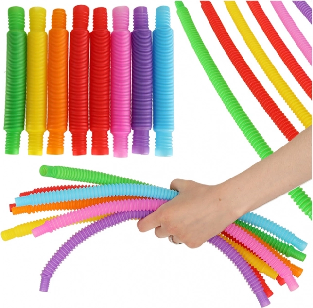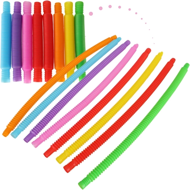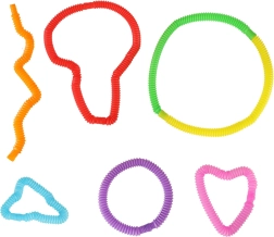 Lorsqu'ils sont étirés, les tubes produisent des sons qui captivent l'attention des enfants et stimulent l'audition. Leur texture de surface aide à développer les sens tactiles. Les tubes individuels peuvent former des formes simples comme des cœurs, des carrés ou des cercles, et lorsqu'ils sont connectés, ils peuvent former des structures plus complexes.