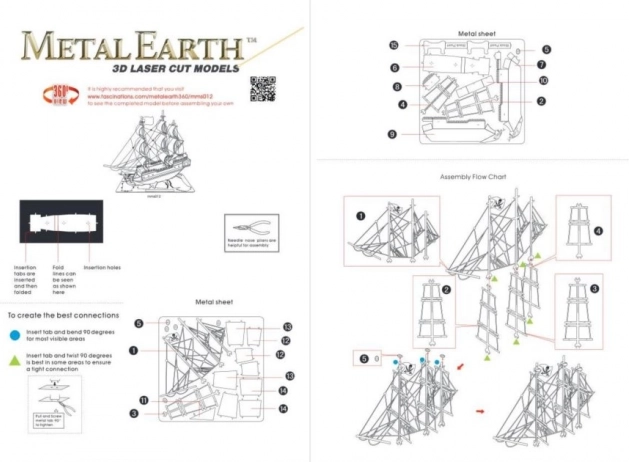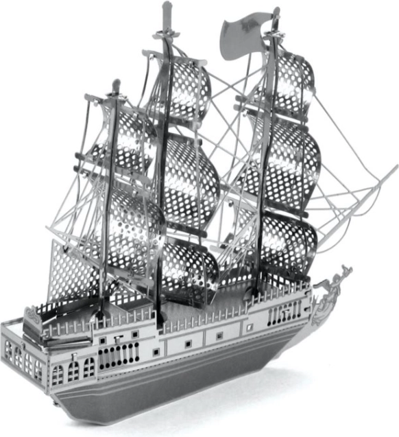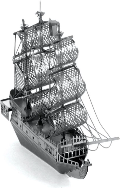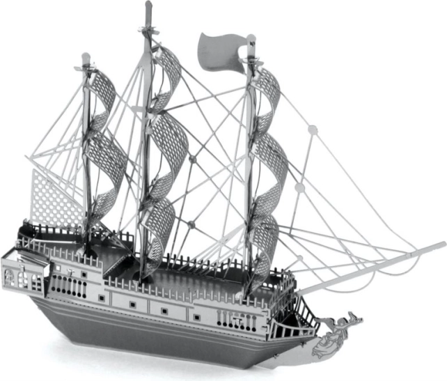 Cette élégante réplique métallique du légendaire Black Pearl ravira les amateurs de maquettes, d’icônes du cinéma et de décorations originales. À partir de 2 feuilles d’acier de 11 × 11 cm, assemblez un navire détaillé avec voiles finement ajourées et éléments de coque réalistes. Le montage demande de la patience, mais la récompense est une décoration stylée pour l’appartement, le bureau ou l’atelier.