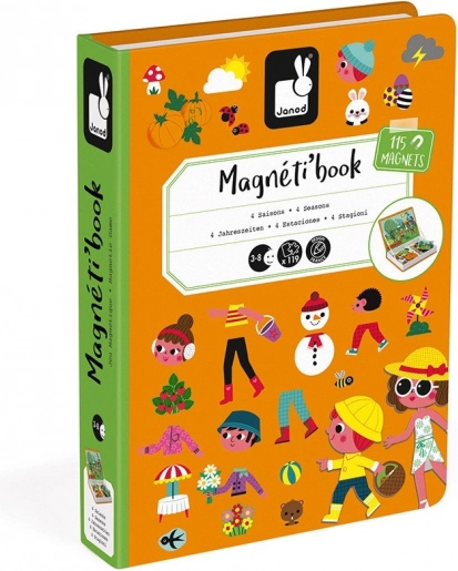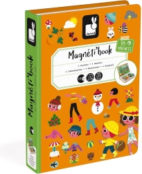 Le livre magnétique Janod Magnetibook – saisons développe l’imagination, la logique et la motricité fine. Les enfants recréent les scènes de chaque saison à partir de cartes-modèles et choisissent les vêtements et accessoires appropriés. Grâce à son format compact en forme de livre, il est parfait pour les trajets, la voiture ou les visites.