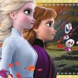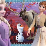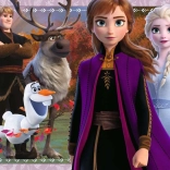 Puzzle pour enfants avec des motifs du film La Reine des neiges 2, proposant quatre images magiques pour les petits fans. Idéal pour les enfants dès 4 ans.