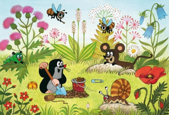 Grâce à la texture spéciale en lin, la surface du puzzle est sans reflets gênants, ce qui augmente le confort pendant le jeu. Le carton recyclé est à la fois solide et flexible, adapté aux mains des enfants. L’assemblage développe la motricité fine, la patience et la pensée logique, tout en offrant beaucoup de plaisir avec les personnages des histoires de la Petite Taupe.