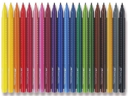 Set ergonomique de feutres Faber-Castell Grip en 20 pièces, offrant des couleurs vives et éclatantes, une encre à base d’eau lavable sur la plupart des textiles, et un corps triangulaire avec zone GRIP confortable. La pointe résistante supporte une pression plus élevée et la boîte en plastique facilite le transport et le rangement.