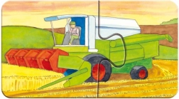 Des scènes illustrées avec des poussins, des porcelets, des vaches ainsi qu’un tracteur et une moissonneuse-batteuse développent la connaissance du monde qui nous entoure.