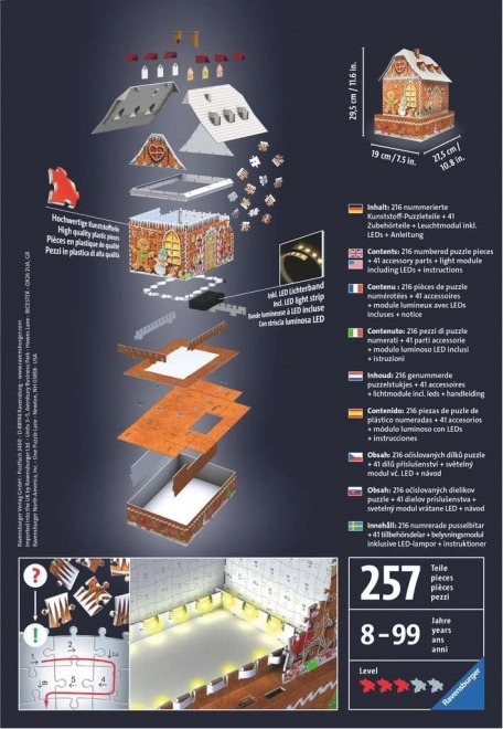 Plongez dans le monde enchanteur du Ravensburger Puzzle 3D et assemblez chaque pièce pour découvrir la magique Maison en pain d'épices. Ce puzzle :