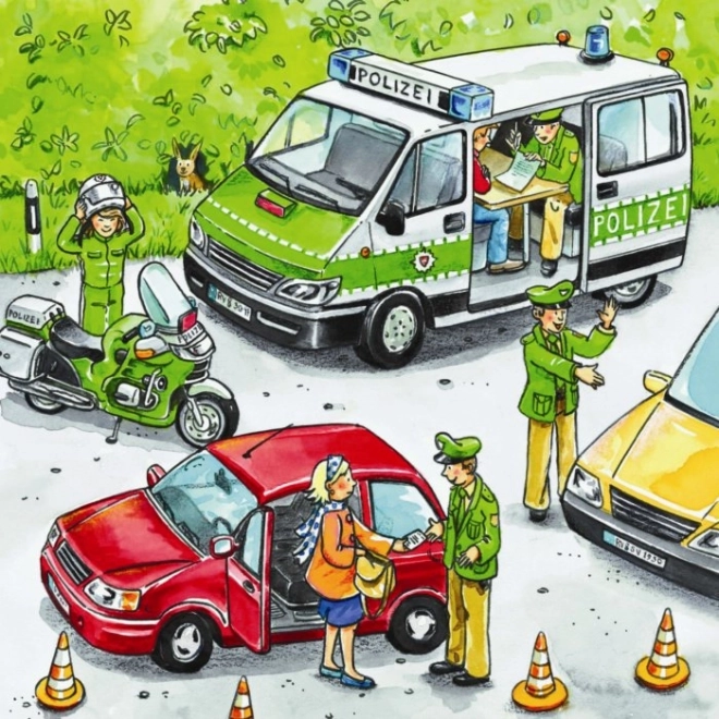 Ce set de trois puzzles mettant en scène des véhicules et interventions de police apporte aux enfants la joie d’assembler tout en développant la motricité fine, la logique et la patience. Une fois assemblé, chaque puzzle mesure environ 17,8 × 17,8 cm et, grâce à la découpe précise typique de RAVENSBURGER, les pièces s’imbriquent à la perfection.
