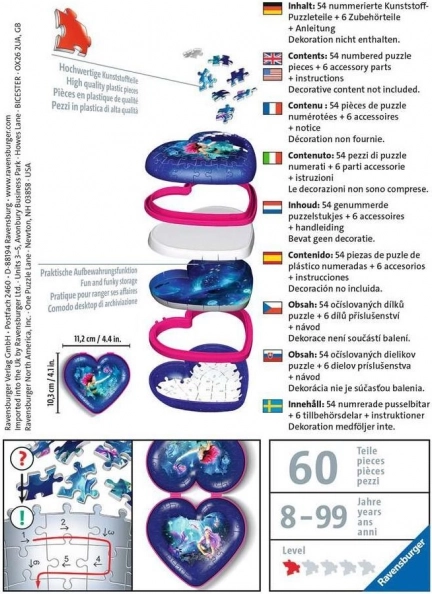 Créez une boîte à bijoux 3D en forme de cœur au motif féerique de sirène. Les pièces courbées et flexibles s’ajustent avec précision et, grâce à la qualité du plastique rigide, conservent la forme sans besoin de colle.