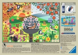 Ravensburger "I Like Birds – Birdie Seasons" est un incroyable puzzle de 1000 pièces qui apporte un morceau de nature dans votre maison. L'illustration inclut des espèces d'oiseaux comme le chardonneret, le merle, le bruant et la mésange, mises en valeur par des fleurs saisonnières. Cette œuvre artistique est signée Stuart Cox, célèbre pour sa passion pour la nature et son design détaillé.