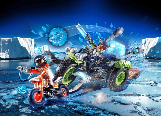 Nous vous présentons le Playmobil Top Agents Triporteur des Rebelles de l'Arctique, un jouet plein d'action qui apporte l'aventure chez vous. Profitez de l'excitation lors d'une poursuite avec les rebelles arctiques, qui traquent un agent secret.