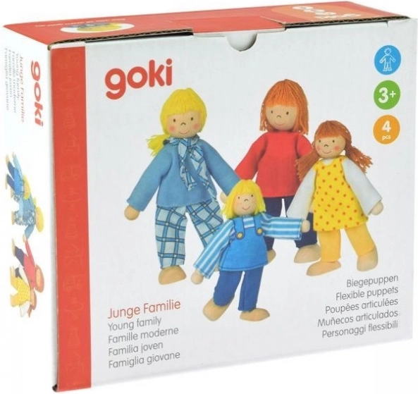 Le set « jeune famille » comprend une maman, un papa, une fille et un garçon. Les corps en bois avec fil flexible permettent des poses naturelles – les enfants peuvent facilement mettre en scène des situations du quotidien et leurs propres histoires. Grâce à leur hauteur de 10–12 cm, les figurines s’adaptent parfaitement aux maisons de poupées standard, en particulier aux modèles de la marque GOKI.
