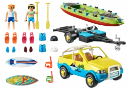 Partez à l’aventure sur la côte avec cet ensemble ludique qui réunit une voiture de plage, une remorque pour bateau pratique et une foule d’accessoires pour le surf, la balade en canoë et le snorkeling. Inclus : 2 figurines, des gilets de sauvetage et des casques – idéal pour les enfants à partir de 4 ans.