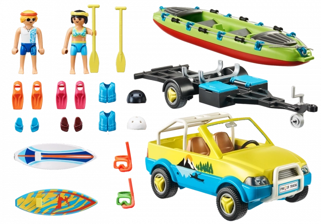 L’ensemble PLAYMOBIL FAMILY FUN voiture de plage avec remorque pour bateau apporte tout l’univers des activités d’été – des vagues pour les surfeurs aux balades tranquilles en canoë. Le véhicule robuste avec porte-planches et la remorque pour bateau offrent de nombreux scénarios de jeu et gèrent facilement chaque sortie au bord de l’eau.