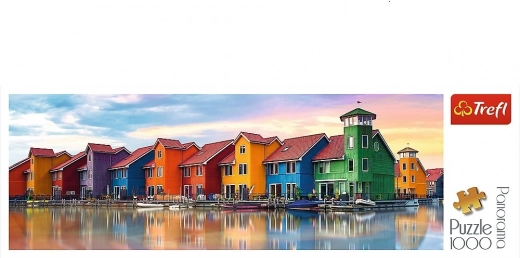 Découvrez la beauté de la ville néerlandaise de Groningue avec ce puzzle panoramique de 1000 pièces. Une fois assemblé, il forme une image de 97 × 34 cm. Papier calandré de qualité réduisant les reflets et impression avec des encres alimentaires écologiques pour des couleurs vives et un assemblage en toute sécurité.