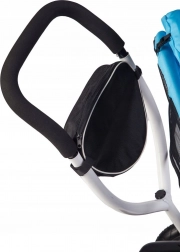 Le tricycle est équipé de roues résistantes – la roue avant a un diamètre de 12 pouces et les roues arrière de 9,5 pouces. L’essieu arrière avec un entraxe de 49 cm assure la stabilité. Les roues arrière disposent d’un frein qui empêche tout mouvement involontaire.