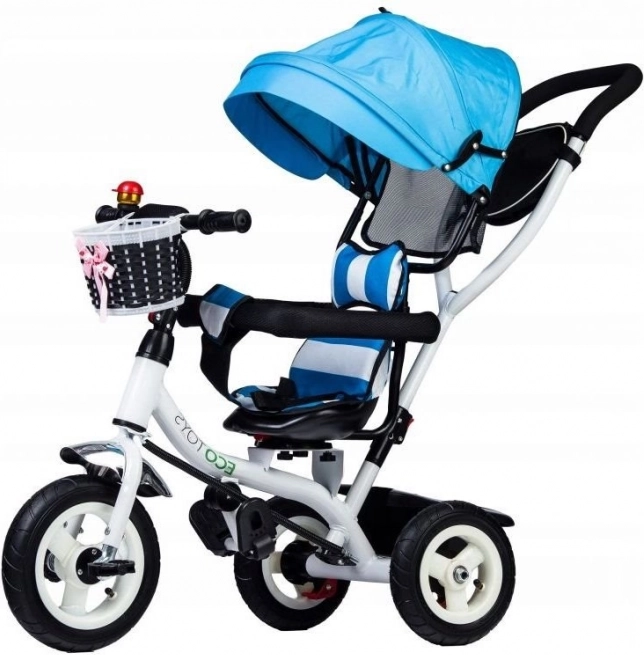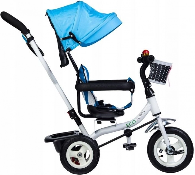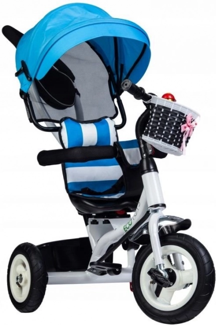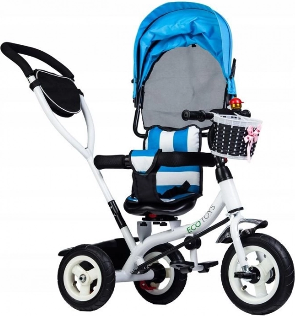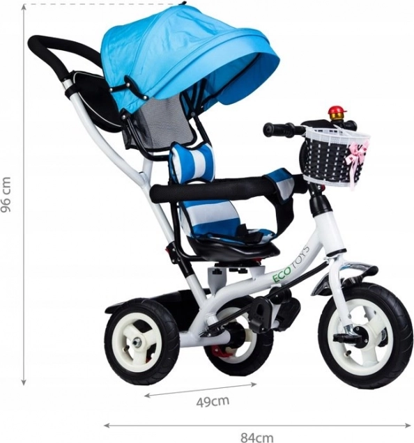 Ce tricycle de la marque ECOTOYS est conçu pour offrir à votre enfant sécurité et confort pendant le jeu comme lors des promenades. Le dossier rembourré associé aux ceintures de sécurité et arceaux de protection garantit que l’enfant reste bien en place. La capote inclinable protège les enfants des intempéries et le siège pivotant facilite la montée et la descente.