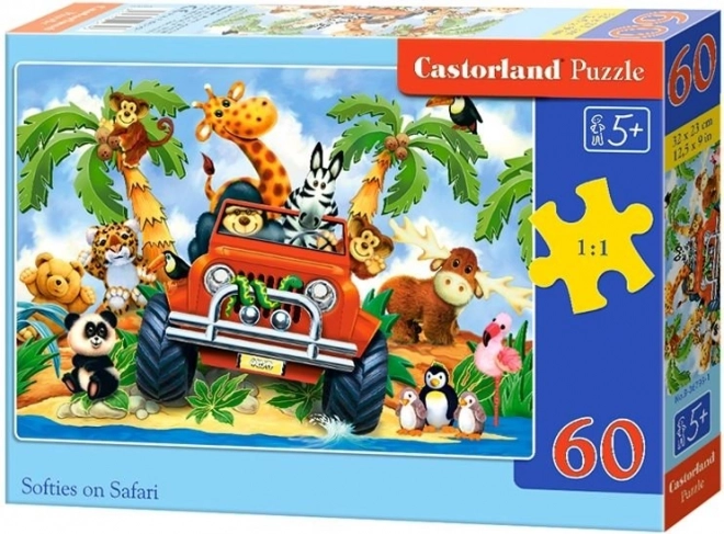 Puzzle coloré pour enfants avec le motif Softies on Safari, offrant 60 pièces pour un assemblage amusant et le développement des compétences. Une fois assemblé, il forme une image de 32 × 23 cm. Sa fabrication de qualité, ses couleurs vives et ses pièces agréablement grandes favorisent la concentration, la patience et le plaisir de jouer.