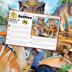 Amusant puzzle 3D au motif de selfie de dinosaures qui ravira les petits comme les grands passionnés de la préhistoire. Grâce à l’effet optique 3D, l’image paraît en relief et en profondeur, donnant l’impression que certains éléments sont plus proches et d’autres plus éloignés. Le puzzle contient 100 pièces et mesure environ 31 × 23 cm une fois assemblé.