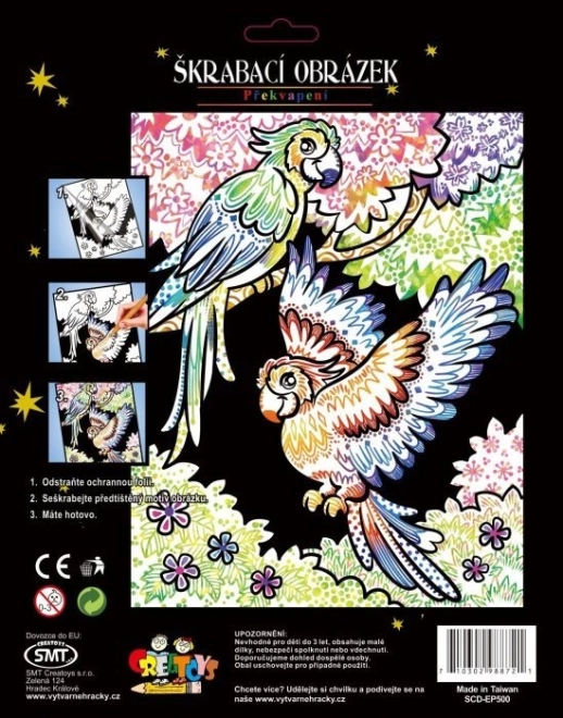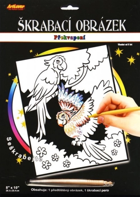 Découvrez la créativité avec l'image à gratter Deux perroquets de la marque ARTLOVER. Un super divertissement pour les enfants et les adultes avec un effet arc-en-ciel pour un résultat magnifique.