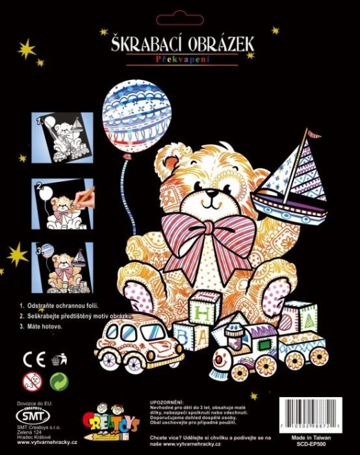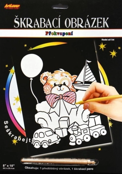 - Contenu de l'emballage: image avec fond arc-en-ciel (20x25 cm), stylo à gratter en plastique (14 cm)