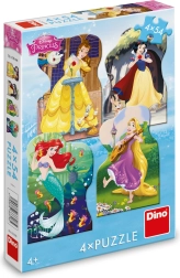 Le coffret contient quatre puzzles séparés avec Raiponce, Ariel, Belle et Blanche‑Neige – chaque motif séduit par ses belles couleurs et ses détails soignés.
