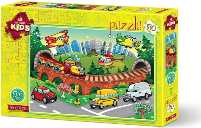 Puzzle pour enfants sur le thème des transports, 50 pièces. Format assemblé env. 48 × 34 cm. Pièces de qualité, amusement et développement de la motricité et de la logique pour les petits débutants.