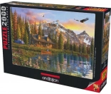 Puzzle Chalet en rondins au bord du lac 2000 pièces