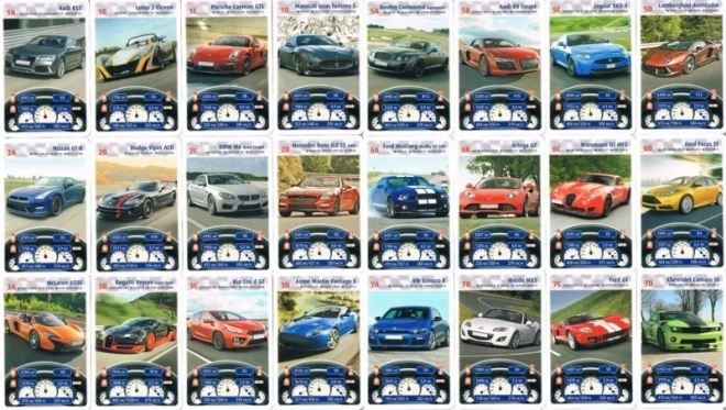 Jeu de cartes amusant pour enfants et adultes sur le thème des voitures de sport. Chaque carte contient de véritables données techniques (cylindrée, nombre de cylindres, poids, accélération 0–100 km/h, puissance et vitesse maximale). Le paquet propose 32 cartes réparties en 8 quatuors – idéal pour au moins 3 joueurs et des parties familiales palpitantes.