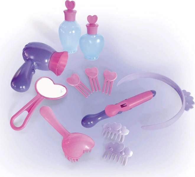 - 12 accessoires – flacons, sèche-cheveux, serre-tête, barrettes et plus pour un jeu réaliste.