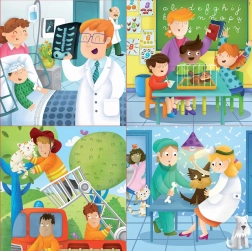 Ce set coloré de puzzles pour enfants présente différents métiers de demain et encourage les enfants à explorer le monde qui les entoure. La progression des niveaux de difficulté (12, 16, 20 et 25 pièces) permet un développement graduel des compétences et apporte la satisfaction de chaque réussite.
