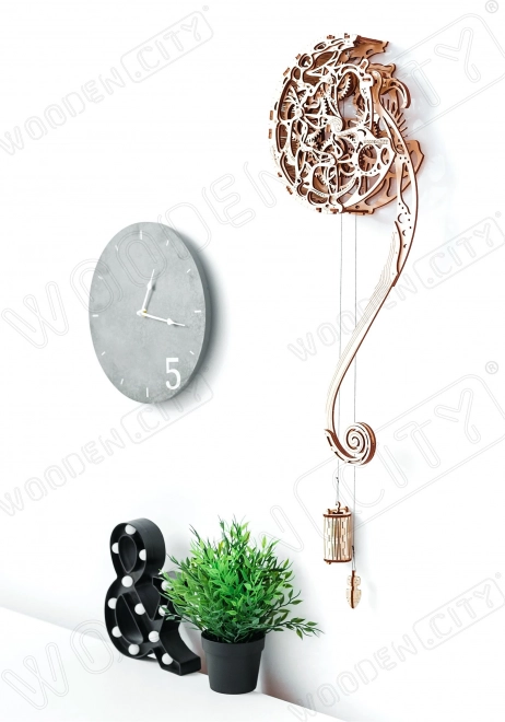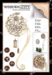 Ce modèle de pendule ajourée est incroyablement beau et possède un mécanisme ouvert au design précis. Assemblez cet objet magnifique que vous pourrez exposer chez vous comme décoration et utiliser aussi pour la méditation. Le rythme de la vie peut être intense, avec le stress quotidien et la fatigue accumulée... De nombreux psychologues recommandent la méditation comme moyen de se détendre, de se concentrer et simplement de se reposer mentalement et physiquement. Procurez-vous ce modèle et trouvez le calme, la beauté et la joie ! - Se met en marche en tirant vers le bas le poids moteur, - balancement régulier à rythme stabilisé, - pour changer le rythme du pendule, fixez des pièces de monnaie sur le poids ou le long de la face interne du pendule, - le nombre de pièces influence la période d’oscillation, - intéressant et instructif, - enseigne les principes du mouvement mécanique, les lois physiques et l’importance de l’esthétique, - durée de fonctionnement après un lancement d’environ 120 minutes. Le puzzle 3D WOODEN CITY Pendulum est un cadeau original pour les amateurs exigeants de beauté et de bien-être. Difficulté : 3 sur 5 (selon la classification Wooden City) Temps indicatif d’assemblage : 5 heures Les puzzles 3D en bois WOODEN CITY sont des modèles mécaniques fonctionnels finement élaborés, qui s’assemblent sans colle ni outils. Ils sont fabriqués à partir de matériaux bois écologiques – contreplaqué de bouleau de haute qualité. Avec les puzzles mécaniques en bois WOODEN CITY, vous passerez des heures à vous amuser lors de l’assemblage et découvrirez de près engrenages, moteurs à élastiques, roues dentées et autres composants. modèle mécanique fonctionnel assemblage sans utiliser de colle ni d’outils finition de qualité en matériau naturel détails soignés notice illustrée AVERTISSEMENT : Pour l’assemblage, un cutter à lame sécable, des ciseaux, du papier abrasif et une bougie en cire sont nécessaires (non inclus). Pour un bon fonctionnement et une utilisation sans problème, il est nécessaire d’enduire de cire les axes et les engrenages. Dimensions du puzzle assemblé env. 58,6 x 25,1 x 7,4 cm