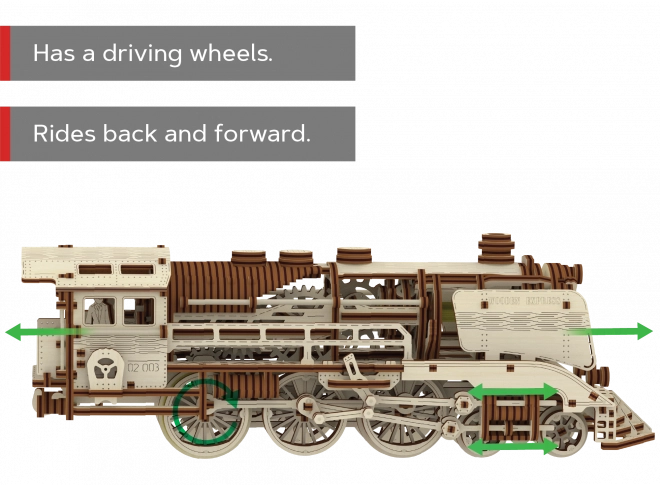 Découvrez le plaisir d’un travail du bois précis et regardez votre locomotive à vapeur se transformer en modèle mécanique vivant. Le WOODEN CITY Wooden Express est un puzzle 3D détaillé en contreplaqué de bouleau de qualité, qui s’assemble sans colle ni outils. Une fois monté, placez-le sur les rails fournis et, grâce au moteur à élastique, il roule en avant, en arrière et en circuit.