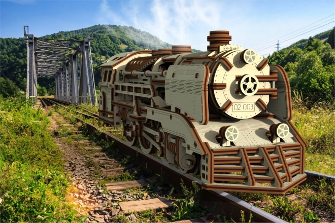 Une courte section de voie est incluse pour présenter le modèle. Les découpes laser précises dans du contreplaqué de bouleau garantissent un assemblage fluide sans colle.