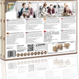 Assemblez une locomotive à vapeur iconique en contreplaqué naturel et donnez-lui vie grâce à une transmission mécanique. Ce modèle WOODEN CITY Express avec rails propose 420 pièces découpées au laser à l’échelle 1:40, des engrenages fonctionnels, une conduite avant et arrière et un assemblage sans colle. Un excellent choix pour les amateurs de maquettes, de mécanique et de création en famille.