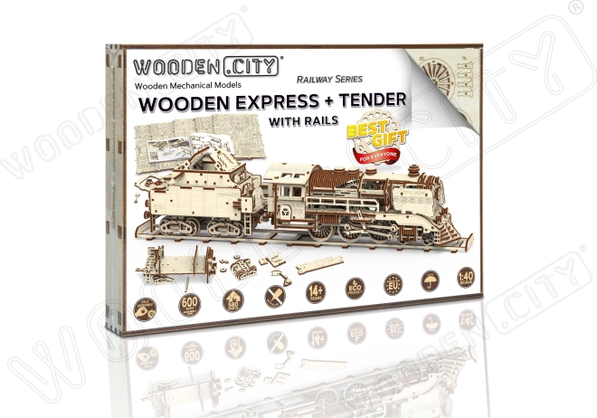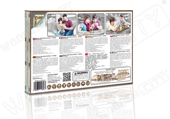 Construisez un express en bois réaliste avec tender et rails et replongez dans l’âge d’or des machines à vapeur. Le modèle est équipé d’une clé de démarrage spéciale, de portes de foyer ouvrantes, de roues motrices et d’un attelage entre la locomotive et le tender. Une fois assemblée, la locomotive roule vers l’avant, vers l’arrière et en cercle, vous profiterez donc autant de la construction que de la conduite.