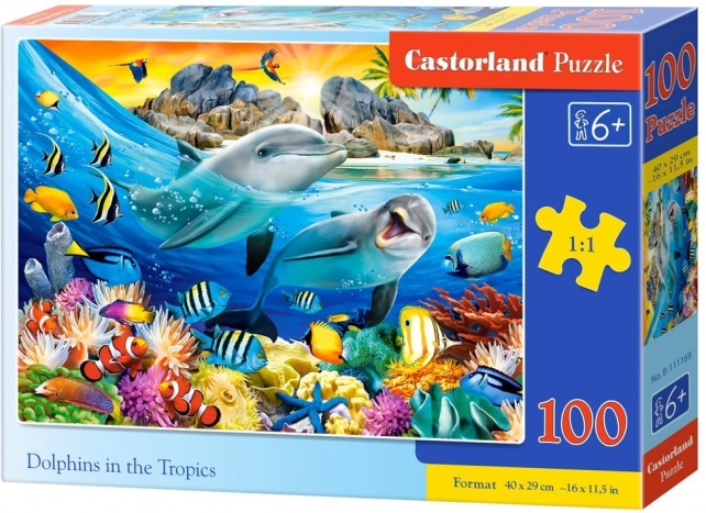 Profitez d’assembler un magnifique motif avec des dauphins dans un paradis tropical. Ces puzzles de qualité avec 100 pièces offrent à la fois divertissement et apprentissage – ils développent la concentration, la patience et la perception des couleurs et des formes. Une fois assemblé, le puzzle mesure 40 × 29 cm et fera le bonheur des enfants comme des adultes.