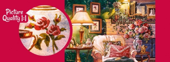 Le puzzle "Temps de thé poétique" est un ensemble qui représente un coin de thé douillet créé par l'artiste talentueuse Erin Dertner. En assemblant, vous ressentirez l'atmosphère paisible de la campagne.