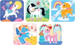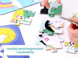 Comment jouer : Séparez les pièces appartenant à différents puzzles et assemblez-les ! Nommez les couleurs et les objets sur les illustrations. Que font les chevaux ? Peut-être créerez-vous votre propre histoire de leurs aventures ?