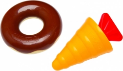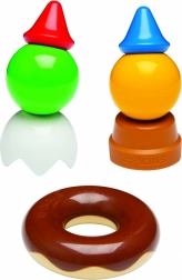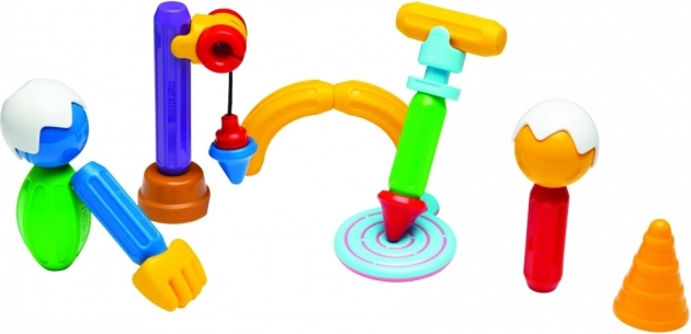 Les pièces colorées, les personnages et les outils encouragent l’imagination, le développement de la préhension et la coordination œil–main à chaque jeu.