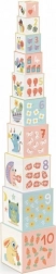 Avec la tour de cubes Les animaux de la forêt, les enfants non seulement empilent des cubes, mais apprennent aussi à les insérer les uns dans les autres. Ce jouet encourage le développement de la motricité fine et de la pensée logique. En construisant, les enfants apprennent à reconnaître les couleurs de base, les formes et les chiffres.