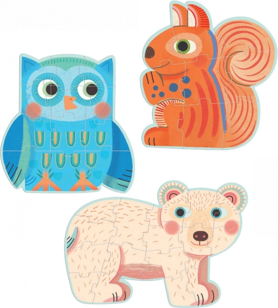 Découvrez l'ensemble ludique de trois puzzles silhouettes DJECO avec des animaux de la forêt – écureuil, chouette et ours. Chaque puzzle a un nombre de pièces différent (9, 12, 16), permettant aux enfants de progresser pas à pas. Favorise la motricité fine, la pensée logique, la coordination œil–main et la patience. Idéal pour les enfants dès 2 ans.