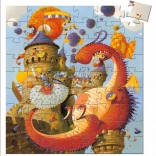Puzzle représentant un combat entre un chevalier et un dragon dans une belle boîte façonnée.
