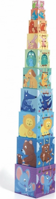 La tour de boîtes gigognes de la marque DJECO, très appréciée, avec des illustrations de mamans et de leurs bébés. Les enfants s’amusent à empiler jusqu’à 89 cm de hauteur, à faire tomber et à emboîter les cubes, tout en apprenant naturellement les couleurs, les formes et leurs premiers nombres et en développant leur motricité fine. L’ensemble comprend 10 cubes pour des heures de jeu.