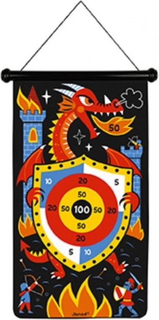 Perfectionnez votre lancer de fléchettes et marquez un maximum de points avec une cible précise ! La cible magnétique double face peut être suspendue au mur, à une poignée ou à un arbre. 6 fléchettes magnétiques sans pointe évitent les blessures et permettent de jouer dès le plus jeune âge. Les zones à viser sont disposées en cercle d’un côté et réparties sur toute la surface de l’autre. Ce jeu d’adresse et de motricité fine est plus qu’un simple divertissement pour enfants et adultes. Il est idéal pour développer la dextérité et la concentration de votre enfant. Pour les enfants de 4 à 8 ans. Dimensions du produit : 44 x 4 x 65 cm.