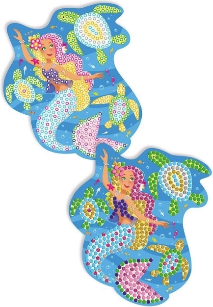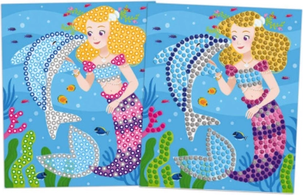 Kit créatif pour enfants dès 5 ans, qui développe la motricité fine et l’imagination. Contient 5 magnifiques images de sirènes et de dauphins et 10 planches d’autocollants mosaïque scintillants et colorés. Collage facile, motifs multicolores et longs moments de jeu à la maison comme en voyage.